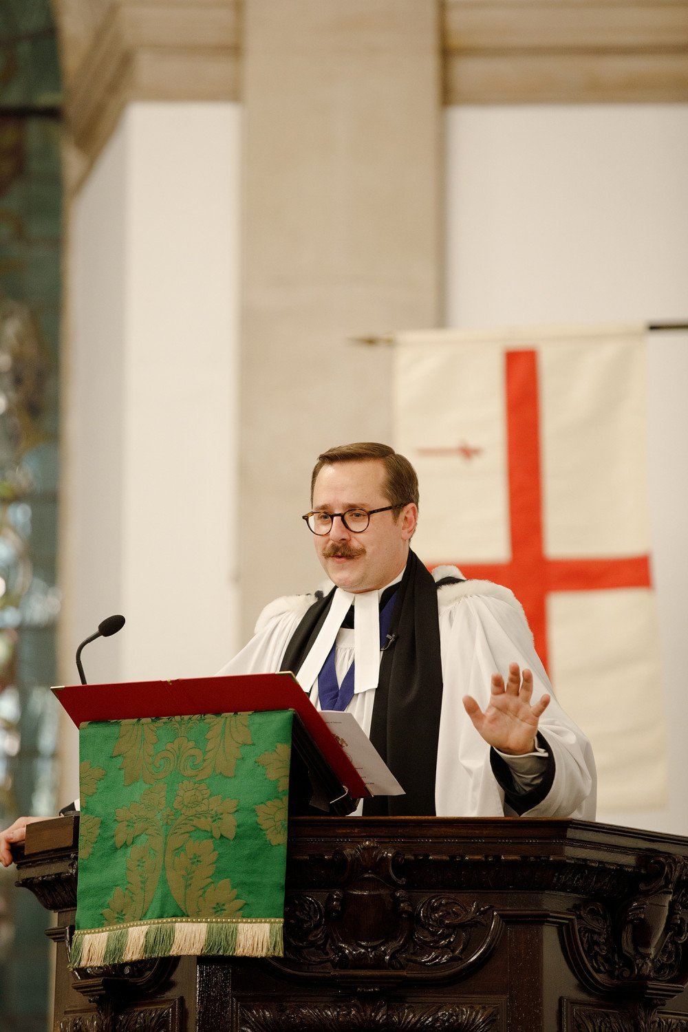 • The dinner was preceded by the Annual Church Service at St Lawrence Jewry, presided over by Fr James Titley, the Company's Honorary Chaplain. The procession from Goldsmiths' Hall to the church was led by the Company's Beagle, Lee Taylor, followed by the Master and Wardens.