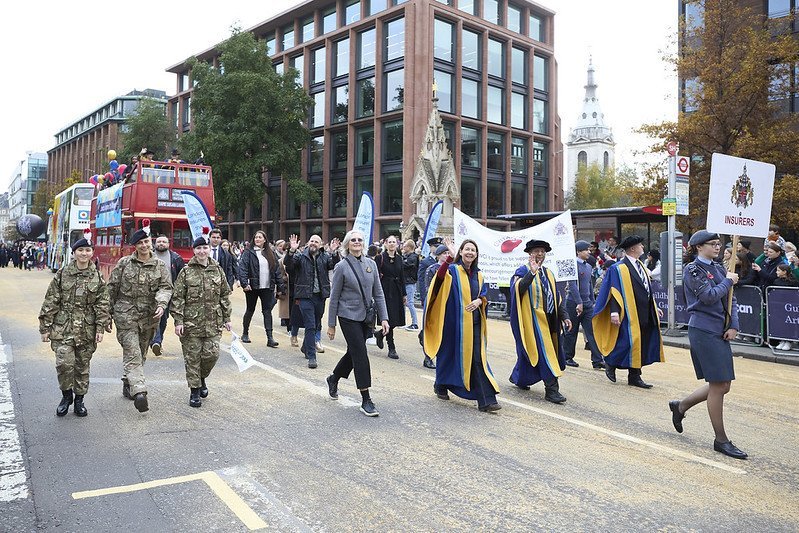 The streets were packed and cheered her all the way. As the Lady Mayor's Mother Company we were given pride of place in the procession in position number four (out of 126). Our bus carried the message that #LondonInsuresThe World on one side and a huge banner congratulating the Lady Mayor on the other side.