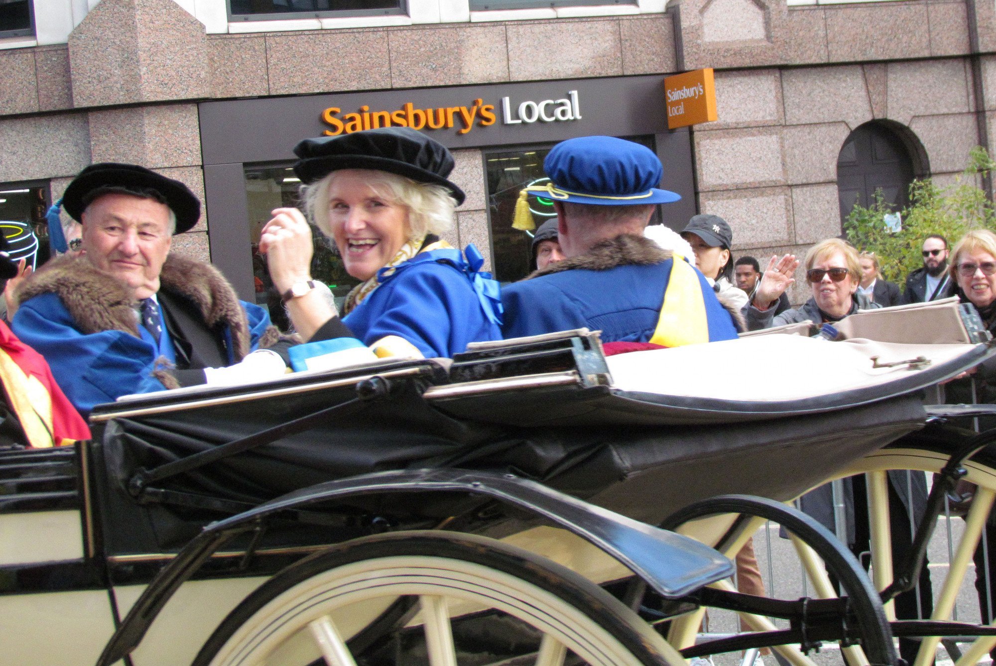 “I couldn’t stay though as my ride in the show was a horse drawn open top carriage – what an experience. With deep crowds lining the route it was waving and cheering all the way – and especially in front of the Mansion House. We were able to witness the Lady Mayor sign the official warrant at the Royal Courts of Justice, before riding back. I looked at young children standing at the roadside and remembered how Sue has said she had seen the show from her grandfather’s shoulders. Would any of those children I saw be a future Lord or Lady Mayor I wondered?